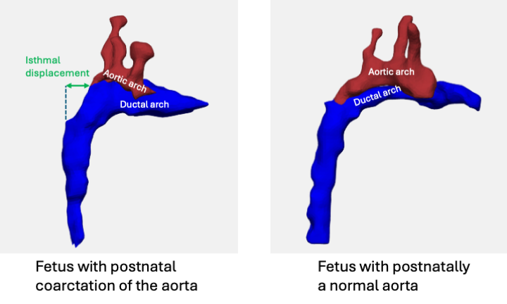 Figure 2 depicts the 3D reconstruction of blackBlood imaging in a case with postnatal COA and one with postnatally normal aortic arch