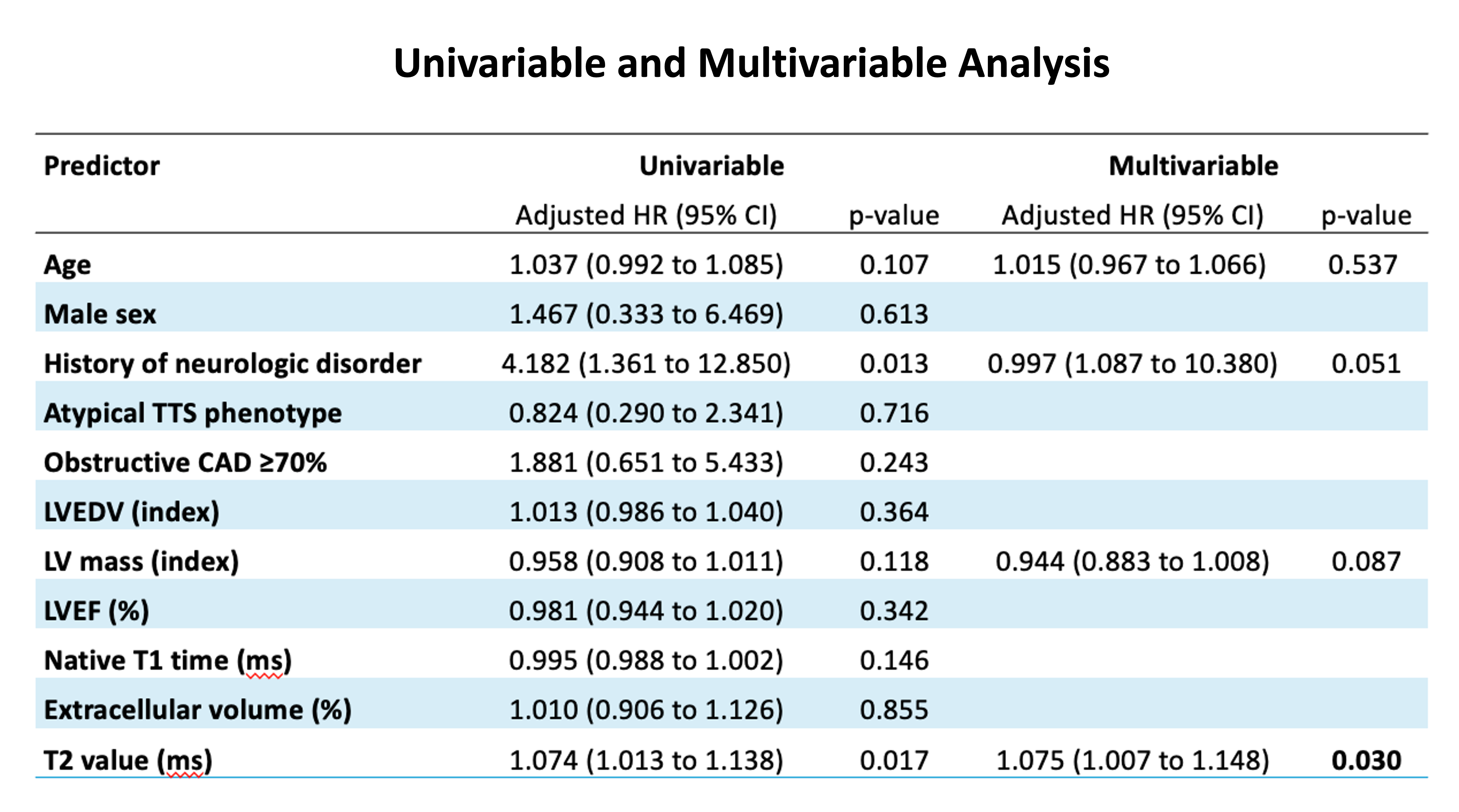 Figure 2. Multivariable Cox models for predicting MACCE