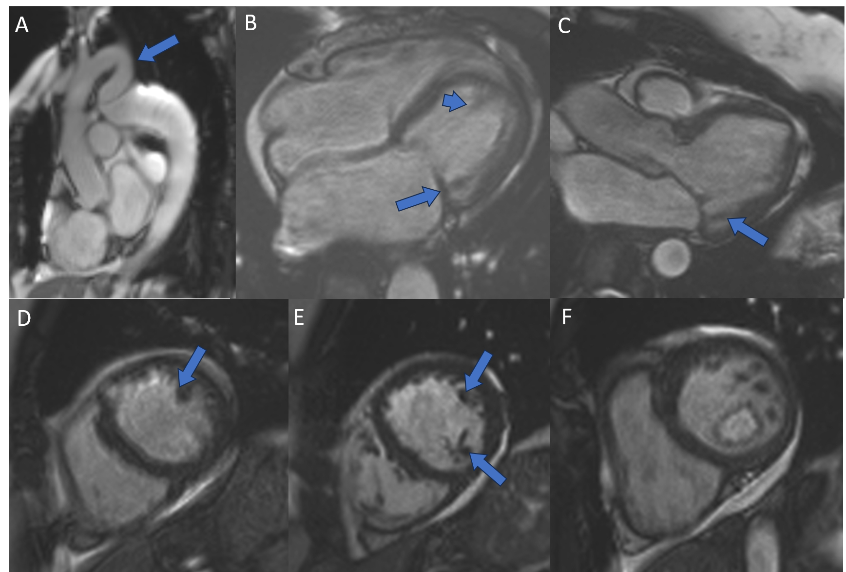 Fig. 2: 4D flow of aortic coarctation with flow acceleration in stenosis and turbulent flow in post stenotic dilatation.