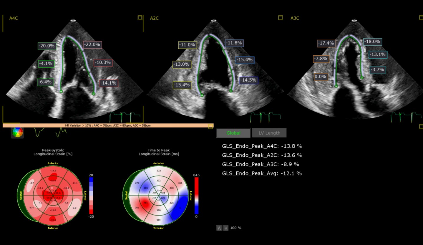Fig 3. (A) Native T1 mapping of the LV base demonstrating a normal myocardial value of 1132ms and an unexpectedly low blood pool value of 1237ms (Acquired on a 3T machine). (B) Post-contrast T1 mapping of the LV base demonstrating a normal myocardial value of 433ms and blood pool value of 406ms. These myocardial values are inappropriately low for a patient with biopsy confirmed AL amyloidosis given concurrent use of supplemental IV iron.