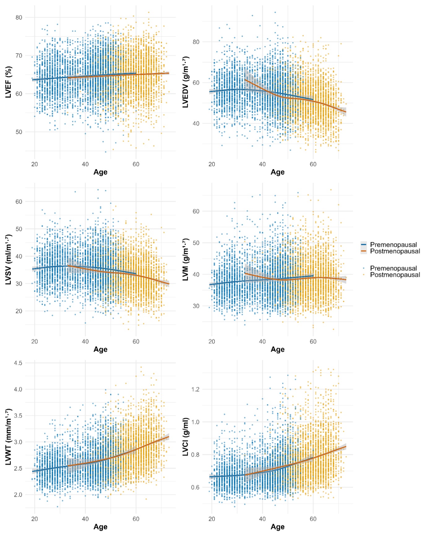 Figure 2. Associations of lifestyle factors with cardiac remodeling in pre- and postmenopausal women: forest plots of adjusted models.