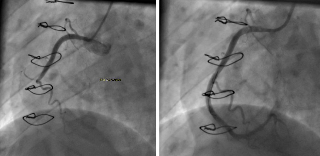 this picture shows the incresed RCA perivascular fat in a CCTA done 8 months before the acute MI compared with normal RCA perivascular fat in a CCTA done 2 years prior (both are done as a routine follow up and the patient had no symptoms at time)
