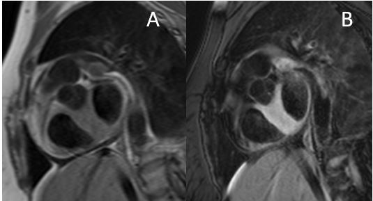 Figure 2: Short Axis T1-weighted (A) and Short Axis T2 Fat Saturation (B)