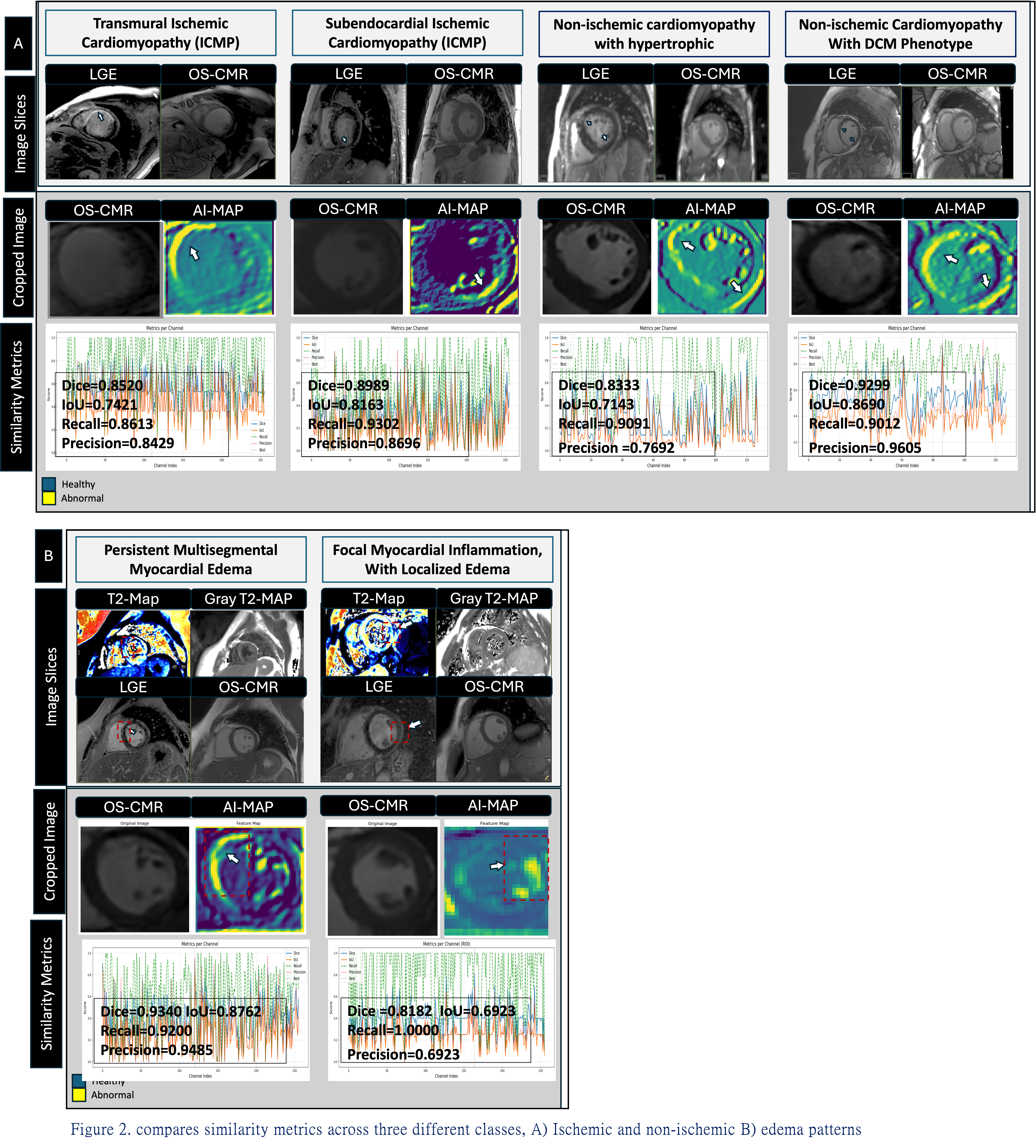 Figure 2. compares similarity metrics across three different classes, A) Ischemic and non-ischemic B) edema patterns.png)
