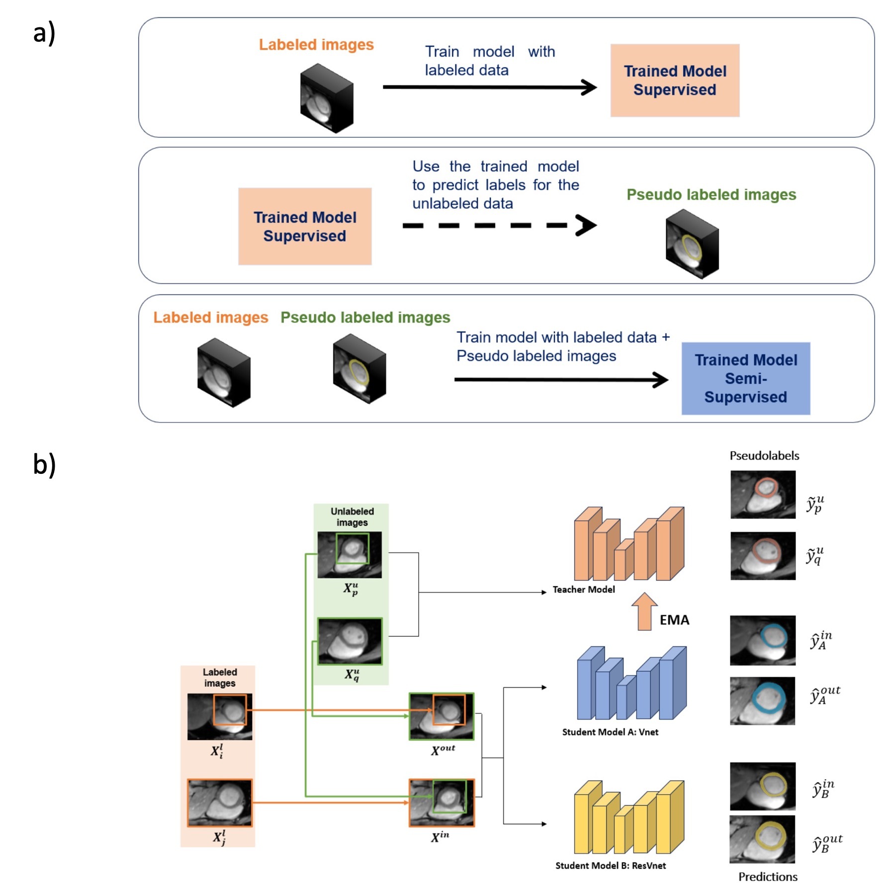 Labeled | nnUNet | Labeled | Unlabeled | Semi-supervised nnUNet | SDCL (ResVNet) | SDCL (Swin-UNet) | |
