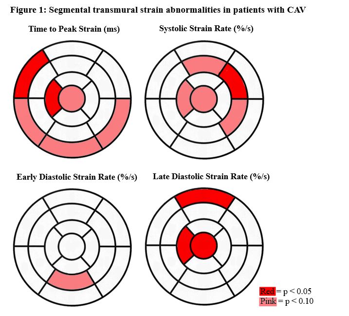 | Transmural Strain | Healthy PHT (n=38) | CAVLAD (n=3)(p-value) | CAVRCA (n=6)(p-value) | CAVLCA (n=2)(p-value) |