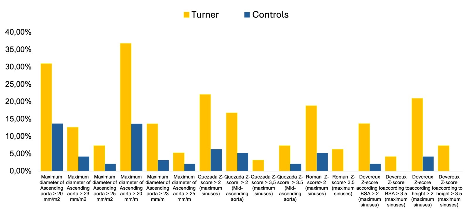 Figure 2: Proportion of turner and controls reaching dilatation and interventions thresholds