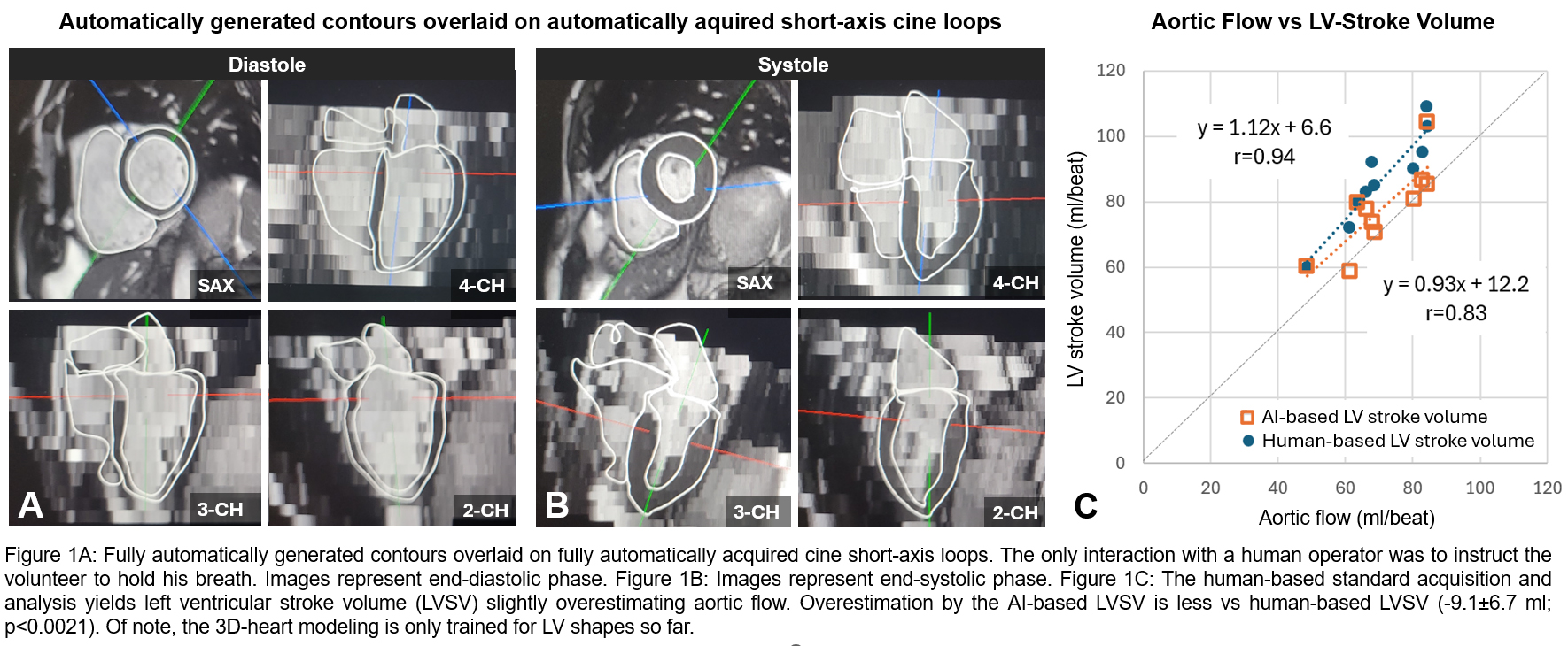 Figure 2: Bland-Altman plots: The grey area corresponds to a coefficient of variation of 10% (CV%). If the 95%-confidence interval is within this grey area, the measurement fulfills the generally accepted CV% indicating its potential usefullness in clinics, i.e. a replacement of the standard method by the novel method for left ventricular end-diastolic volume (LVEDV), LV stroke volume (LVSV), and LV éjection fraction (LVEF). LVESV: LV end-systolic volume.
